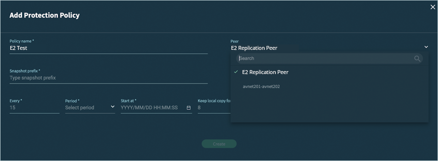 - Provide an appropriate Snapshot Prefix and configure the desired replication schedule, and click Create.